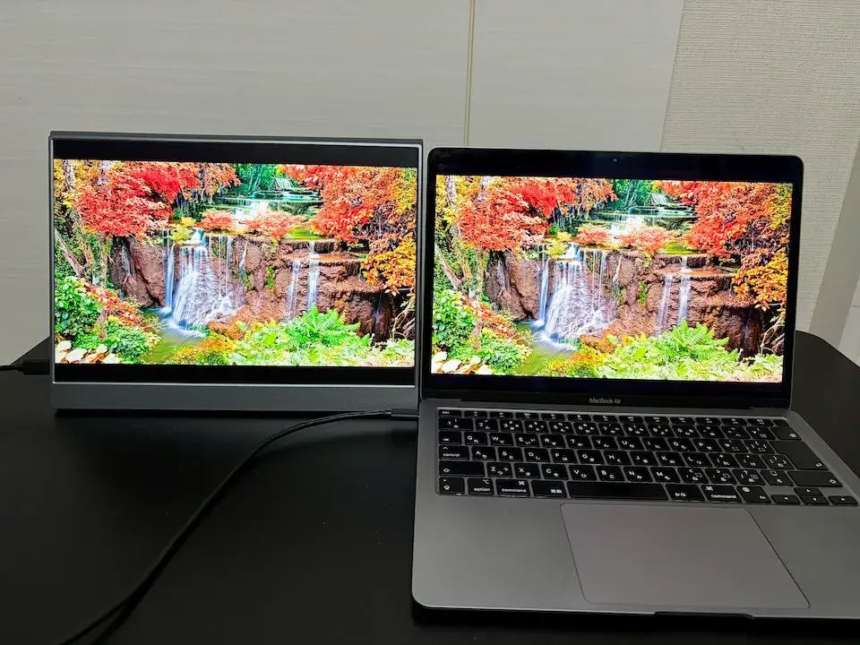 kksmart NK-133は実際に使ってみて、MacBook Airとほとんど変わらない明るさや画面のきれいさで驚きました!